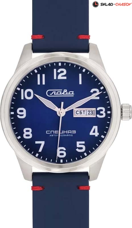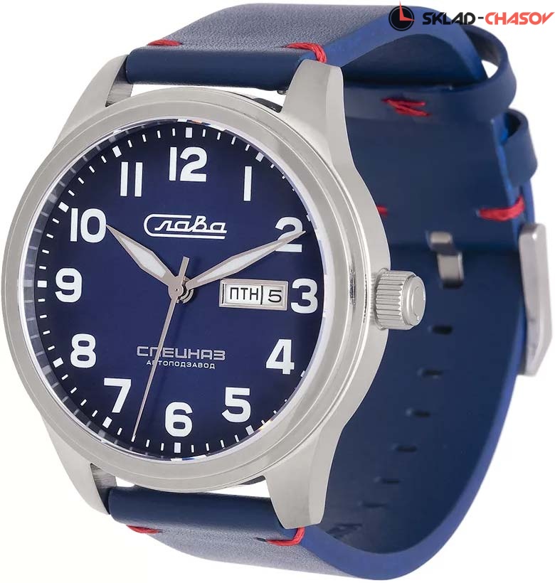 Традиция. Мужские механические часы с автоподзаводом. В механизме 21 камень, частота 21600 полуколебаний в час. Запас хода 42 часа. Круглый стальной корпус. Окошко даты и дня недели в положении 3 часа. Метки в виде арабских цифр. Надпись «Спецназ» и логотип на циферблате. Рифленая заводная головка. Удобный ремешок из натуральной кожи с классической застежкой.