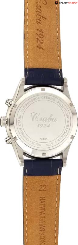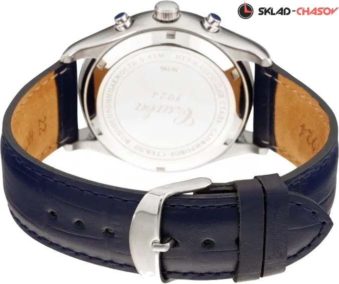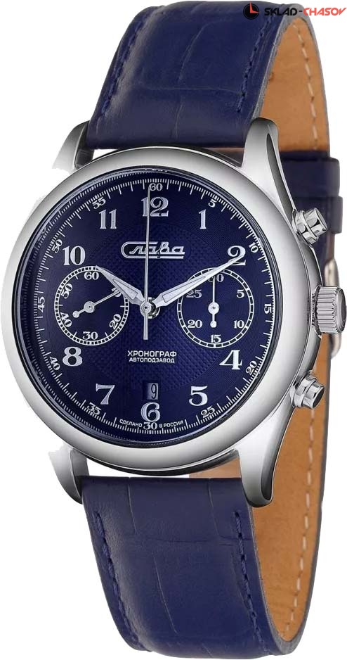 Сенат. Мужские механические часы-хронограф с секундомером и автоподзаводом. В механизме 32 камня, частота 28800 полуколебаний в час. Запас хода 45 часов. Круглый стальной корпус. Острые стрелки в стиле Alpha. Метки в виде арабских цифр. Окошко даты в положении 6 часов. Рифленая заводная головка. Удобный ремешок из натуральной кожи с классической застежкой.