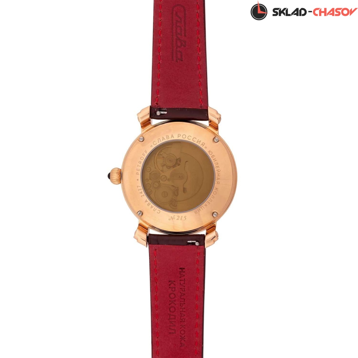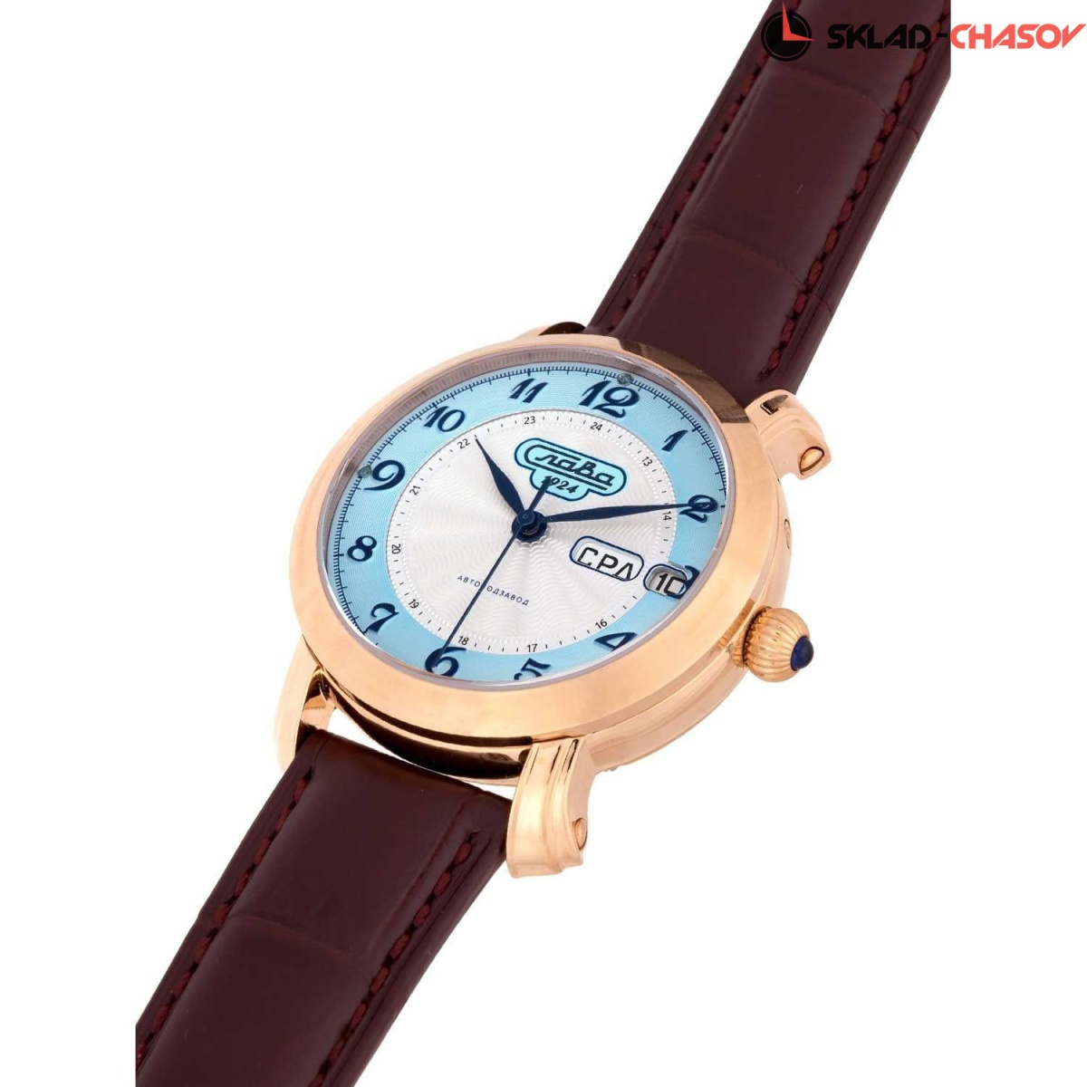 Наручные часы Слава Слава России 2443616/300-2427 — воплощение классического стиля и исключительного качества, произведенные в России. Эта модель из лимитированной коллекции, выпущенной в количестве всего 300 экземпляров, станет великолепным дополнением к вашему образу. Часы оснащены надежным механическим механизмом "Слава 2427" с автоподзаводом, обеспечивающим точный ход и оснащены двойным календарем, что позволяет всегда быть в курсе текущей даты. Корпус из нержавеющей стали с золотистым PVD покрытием диаметром 41 мм и толщиной 14,2 мм отличается высокой прочностью и водозащитой до 5 ATM. Серебристо-голубой циферблат с арабскими цифрами защищен сапфировым стеклом, устойчивым к царапинам, что позволяет надолго сохранить безупречный вид часов. На 3 часах расположено окошко с указателем даты и дня недели. Кожаный ремень из крокодила с застежкой «бабочка» добавляет элегантности и комфорта, создавая ощущение роскоши и изысканности. Эта модель станет идеальным выбором для тех, кто ценит традиции и высокое качество в сочетании с современным дизайном.