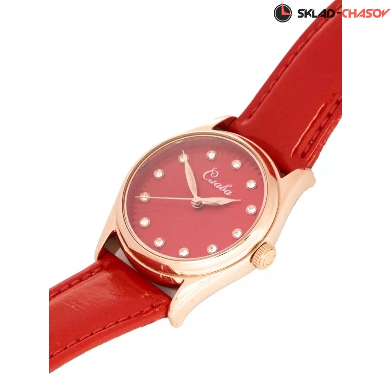 Сенат. Женские наручные часы. Стальной круглый корпус. Циферблат защищен прочным сапфировым стеклом. Листовидные стрелки в стиле Feuille. Метки в виде точек, украшенных цирконовыми кристаллами. Рифленая заводная головка. Удобный ремешок из натуральной кожи с классической застежкой.