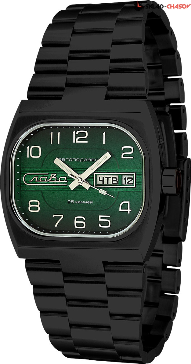 Эти часы добавят в образ мужчины стиля и элегантности, а точный механизм не позволит упустить ни одной минуты. Телевизор. Лимитированная серия - 500 экземпляров. Компания «Слава» выпустила новый вариант часов, который был очень популярен в СССР и получил название «Танк». Окошко даты и дня недели. В механизме 25 камней, частота 18000 полуколебаний в час. Запас хода 31 час. Сатинированный прямоугольный корпус. Завинчивающаяся задняя крышка. Заводная головка с эмалью красного цвета и изображением первой буквы названия производителя часов. Браслет с раскладывающейся застежкой.
