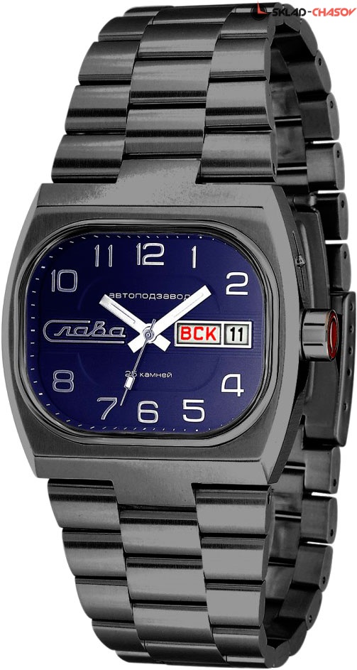 Аккуратные часы в стальном корпусе подойдут мужчине с превосходным чувством стиля. Телевизор. Лимитированная серия - 500 экземпляров. Компания «Слава» выпустила новый вариант часов, который был очень популярен в СССР и получил название «Танк». Окошко даты и дня недели. В механизме 25 камней, частота 18000 полуколебаний в час. Запас хода 31 час. Сатинированный прямоугольный корпус. Завинчивающаяся задняя крышка. Заводная головка с эмалью красного цвета и изображением первой буквы названия производителя часов. Браслет с раскладывающейся застежкой.
