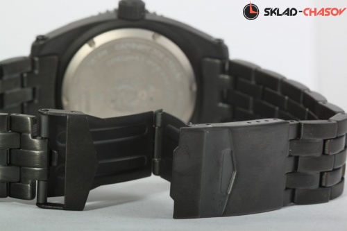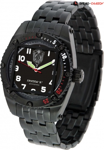 Одна из новых моделей легендарной серии часов "Альфа" в титановом корпусе с черным PVD-покрытием (чернением). Чернение приближает эту модель часов к часам, применяемым в реальных боевых условиях, так как покрытие не отражает света, а значит, не дает опасных в условиях боя бликов. Как и другие модели этой коллекции, часы являются номерными и выпущены специальной ограниченной серией, что подтверждает сертификат и гравировка на задней крышке часов. "Сердце" часов - надежный и точный японский механизм с автоподзаводом. Часы комплектуются специальной защитной решеткой, которая предохраняет от серьезных повреждений прочное антибликовое сапфировое стекло. Корпус и браслет сделаны из титана, наиболее прочного и легкого из всех часовых металлов. Еще одна особенность этой коллекции - качественнная водозащита в 10 АТМ, которая позволяет купаться и плавать, не снимая часов. Часы комплектуются специальным сертификатом, подтверждающим уникальность коллекции и подлинность, а также запасными ремешками.