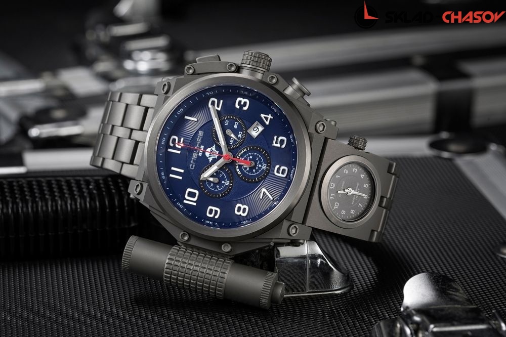 5 Стихий - Воздух. Лимитированная серия - 100 экземпляров. Механизм: Ronda 5130.D. Часы-хронограф с секундомером до 12ч. Два механизма. Второй часовой пояс расположен на браслете. Съемный контейнер с функцией LED-фонарика. Завинчивающаяся заводная головка с защитой. Браслет с раскладывающейся застежкой. Застежка с системой блокировки. В комплекте герметичный водозащищенный контейнер, кожаный ремешок, две отвертки для смены ремней и паспорт. Гарантия 1 год. Функции: Будильник. Второй часовой пояс. Секундомер. Tаймер обратного отсчета. Число. Категория: BOX Армейские часы Лимитированные Уникальный дизаин Комплектация: Часы, фирменная упаковка, инструкция на русском языке, заполненный гарантийный талон.