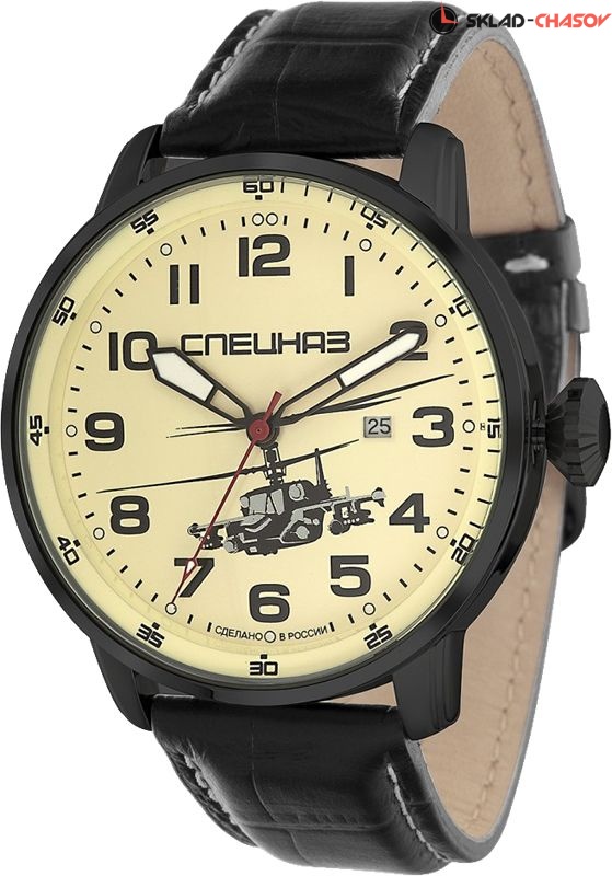 Мужские наручные часы Спецназ "Атака" на кожаном ремешке. Циферблат украшает изображение вертолета. Гарантия 1 год.