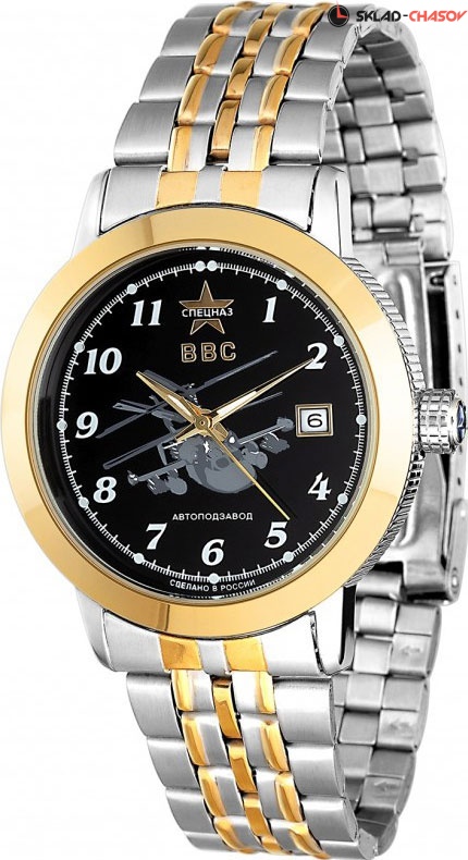 Российские часы придутся по вкусу ценителям практичных и стильных аксессуаров. Идеальный выбор для современного ритма жизни. В механизме 21 камень, частота 21600 полуколебаний в час. Запас хода 36 часов. Окошко даты. Противоударное устройство оси баланса. Возможность ручного завода. Браслет с раскладывающейся застежкой.