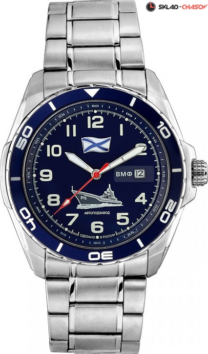 Настоящие мужские часы, которые делают время надежным спутником человека. Циферблат украшен символикой ВМФ России. В механизме 21 камень, частота 21600 полуколебаний в час. Запас хода 42 часа. Окошко даты. Возможность ручного завода. Заводная головка с защитой. Браслет с раскладывающейся застежкой