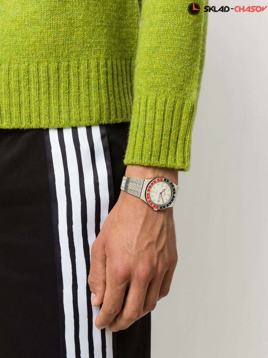 Часы на стальном браслете прекрасно подойдут для мужчин, которые знают толк в практичных аксессуарах. Q Timex Reissue. Циферблат с окошком даты и дня недели. Вращающийся алюминиевый безель. Рифленая заводная головка. Задняя крышка крепится на 4-х винтах и имеет специальное отверстие для замены батарейки с отдельной крышкой. Браслет из нержавеющей стали.