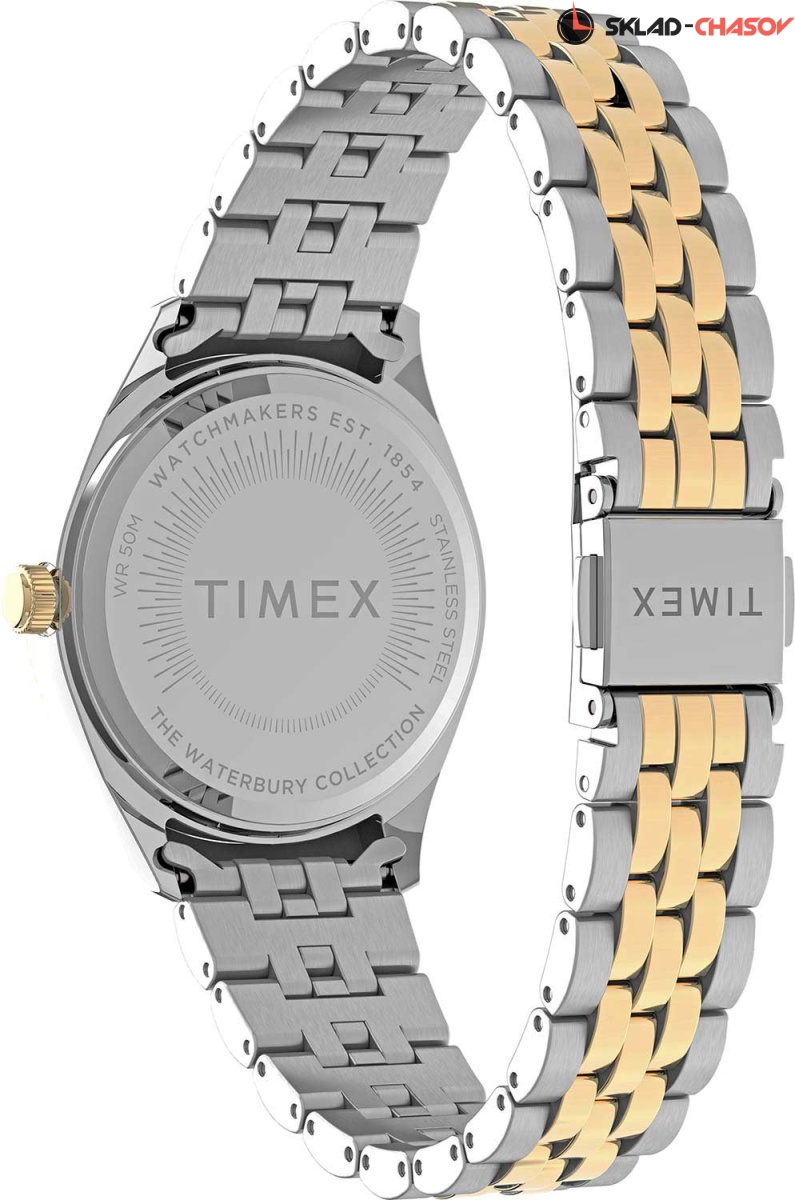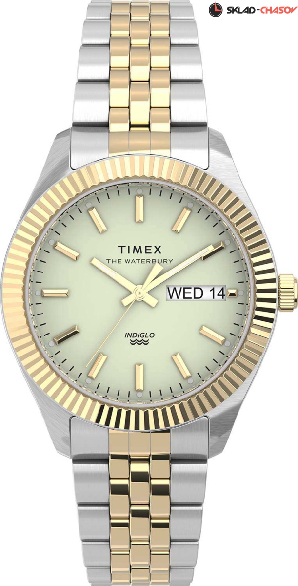 Элегантный дизайн часов идеально завершит повседневный образ истинной леди. Waterbury Legacy. Коллекция посвящена городу Waterbury, где в 1854 году была основана компания Timex. Метки в виде штрихов. Окошко даты и дня недели. Рифленая заводная головка. Безель с алмазной гранью. Браслет с раскладывающейся застежкой.