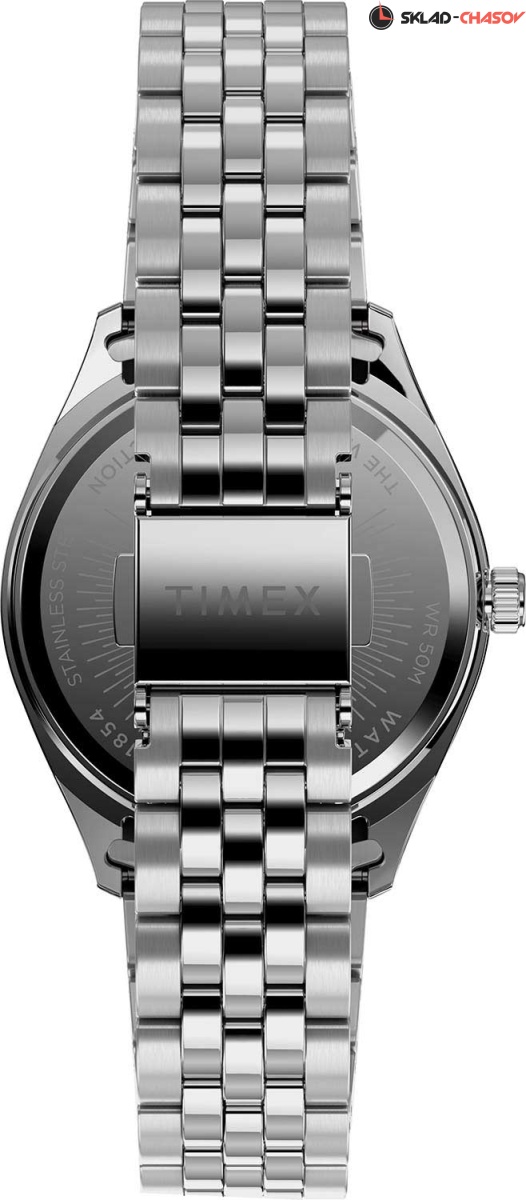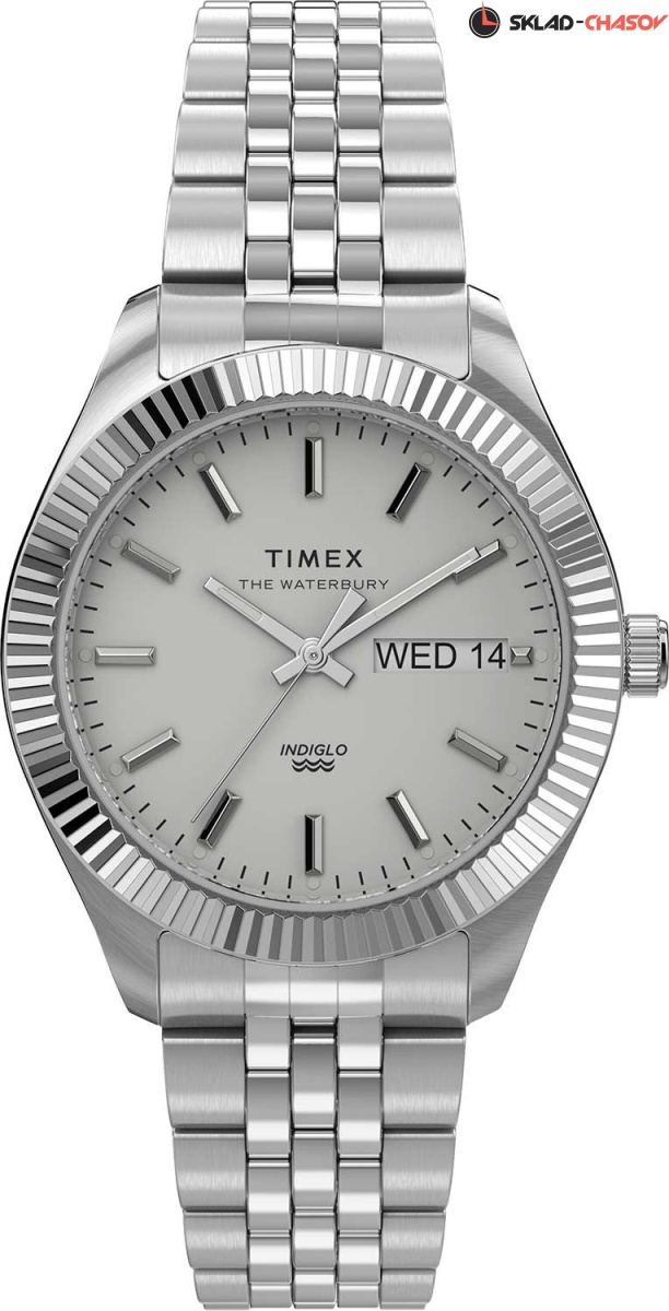 Элегантный дизайн часов идеально завершит повседневный образ истинной леди. Waterbury Legacy. Коллекция посвящена городу Waterbury, где в 1854 году была основана компания Timex. Метки в виде штрихов. Окошко даты и дня недели. Рифленая заводная головка. Безель с алмазной гранью. Браслет с раскладывающейся застежкой.