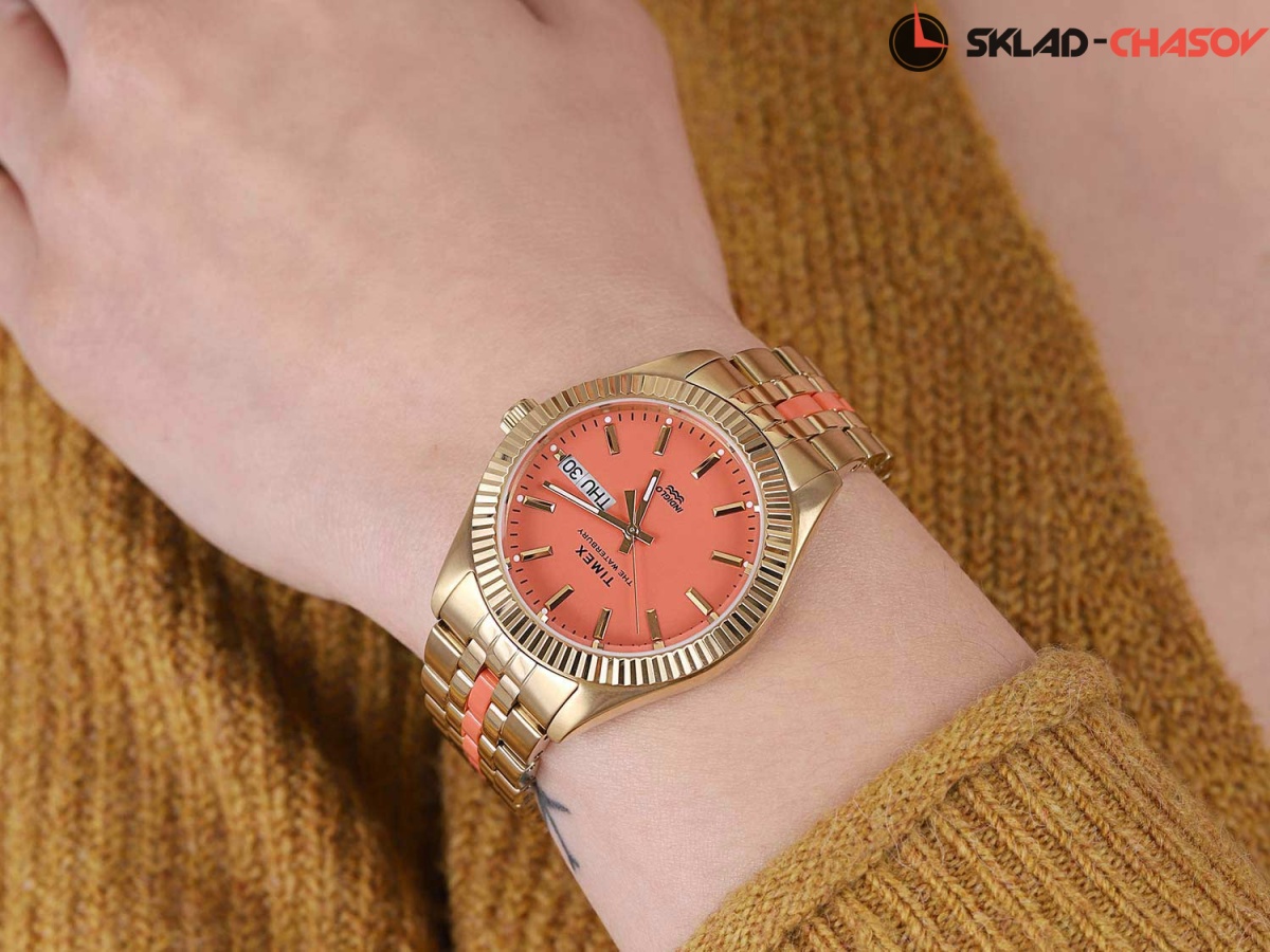 Элегантные часики с яркими акцентами - лучшее решение в любой обстановке. Waterbury Malibu. Коллекция посвящена городу Waterbury, где в 1854 году была основана компания Timex. Модель вдохновлена пляжами Малибу. Метки в виде штрихов. Окошко даты и дня недели. Рифленая заводная головка. Безель с алмазной гранью. Браслет с раскладывающейся застежкой.