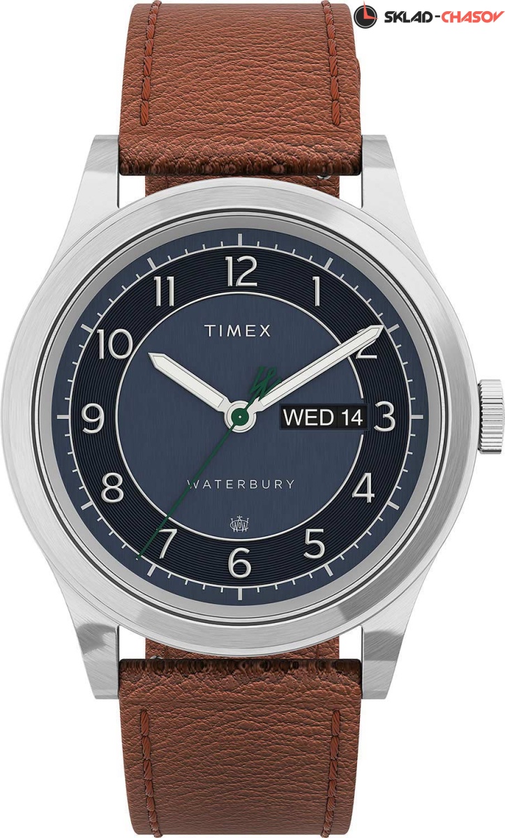 Выразительные часы станут отправной точкой стильного мужского образа. Waterbury Traditional. Коллекция посвящена городу Waterbury, где в 1854 году была основана компания Timex. Метки в виде арабских цифр. Окошко даты и дня недели. Ремешок с классической застежкой и системой быстрой замены.