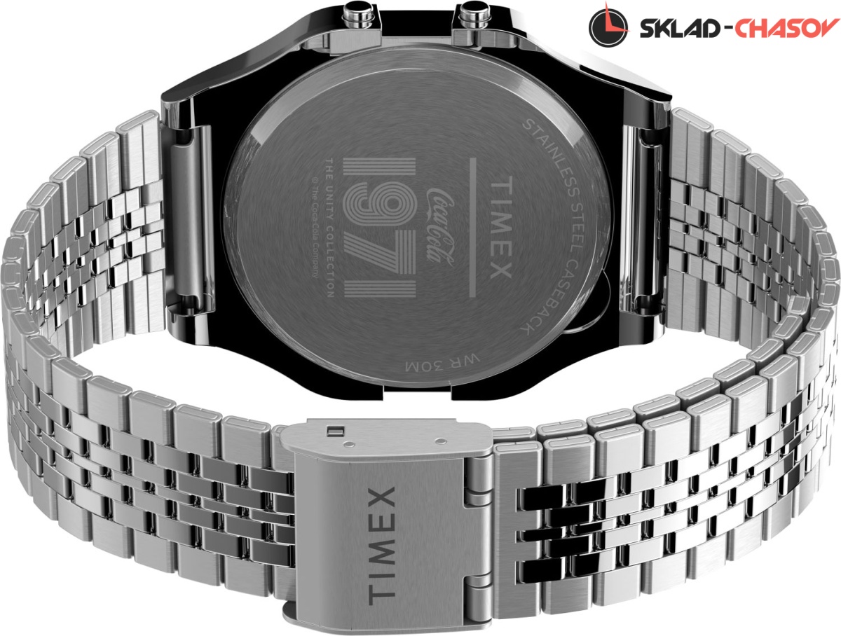Ретро аксессуар для дополнения стильного образа. Серия памятных часов T80 x Coca-Cola с ностальгическим дизайном посвящена легендарной торговой марке, дух которой принизывает полувековую эпоху. Электронный SPLIT-хронограф с секундомером. Точность хронографа 1/100сек. Функция ежедневного будильника. Отображение числа, дня недели и месяца. Сегментный циферблат с фирменной подсветкой Indiglo. Задняя крышка крепится на 4-х винтах. На задней крышке выгравированы логотипы Coca-Cola и 1971. Надежный стальной браслет с регулируемой застежкой.