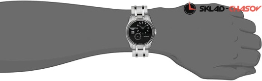 Модель имеет устойчивое к царапинам сапфировое стекло, браслет из нержавеющей стали металлического цвета, черный циферблат.