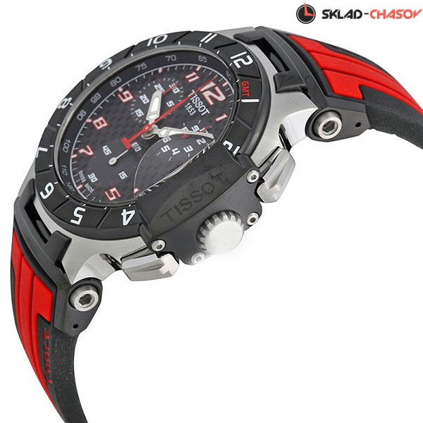 Кварцевый хронограф. Механизм ETA G10.211 (на 4 камнях). Секундная стрелка смещена на маленький циферблат (в 6 часов). Дополнительные циферблаты хронографа: на 30 минут и 1/10 доли секунд. Секундомер с режимами ADD и SPLIT. Окошко даты. • Элемент питания No. 394 (SR 936 SW). • Сапфировое стекло устойчивое к царапанию. • Чёрный карбоновый циферблат с арабскими цифрами и индексами. • Корпус из высококачественного стального сплава 316L с с покрытием PVD черного цвета и под розовое золото. • Водозащита до 10 АТМ. • Мягкий резиновый ремешок чёрного цвета.• Браслетный замок с тройным сгибом, растегиваемый одним касанием. • Размеры корпуса: ширина 45,3, высота 50,26 мм, толщина 12,2 мм. Вес часов 130 грамм. Растояние между душками 21 мм.