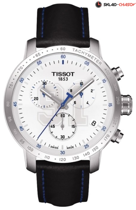 TISSOT T055.417.16.011.00 T-Sport PRC 200 Quartz Chronograph - мужские кварцевые наручные часы. Корпус этих часов среднего размера (42 мм) и выполнен из нержавеющей стали L316 металлического цвета. Модель TISSOT T055.417.16.011.00 T-Sport PRC 200 Quartz Chronograph имеет устойчивое к царапинам сапфировое стекло, ремешок из натуральной кожи черного цвета, белый циферблат. Калибр механизма: ETA G10.211. Класс водозащиты: 200 м / 20 АТМ (разрешается нырять с аквалангом на глубину). Дополнительные функции и особенности: отображение числа, хронограф (секундомер), тахиметр, limited edition (ограниченный выпуск). Полная заводская комплектация TISSOT: оригинальные часы, фирменная коробка, инструкция, сервисная книжка, роман о часовой фабрике, миникаталог, замшевый фирменный чехол черного цвета для хранения и/или переноски часов, кассовый и товарный чеки. Международная гарантия 2 года. Производство и сборка: Швейцария.