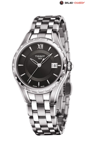 Модель TISSOT T072.210.11.058.00 T-Trend Lady Quartz имеет устойчивое к царапинам сапфировое стекло, браслет из нержавеющей стали металлического цвета, черный циферблат.