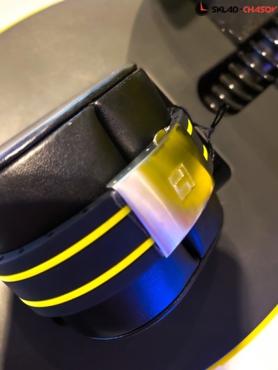 - стильный черный циферблат с яркими желтыми акцентами;