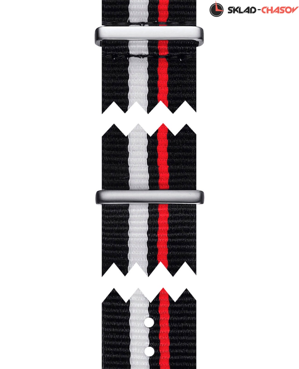 Массивный динамичный хронограф с белым циферблатом комплектуется разноцветным синтетическим ремешком НАТО. Такое исполнение позволяет добавить в образ яркие краски. Корпус сделан из прочной и долговечной нержавеющей стали 316L, он защищает кварцевый механизм ETA G10.211. Среди функциональных особенностей - секундомер, тахиметр, отображение даты. Водонепроницаемость 100 метров. Сапфировое стекло. Габариты: 42 x 42 x 10,7 мм.