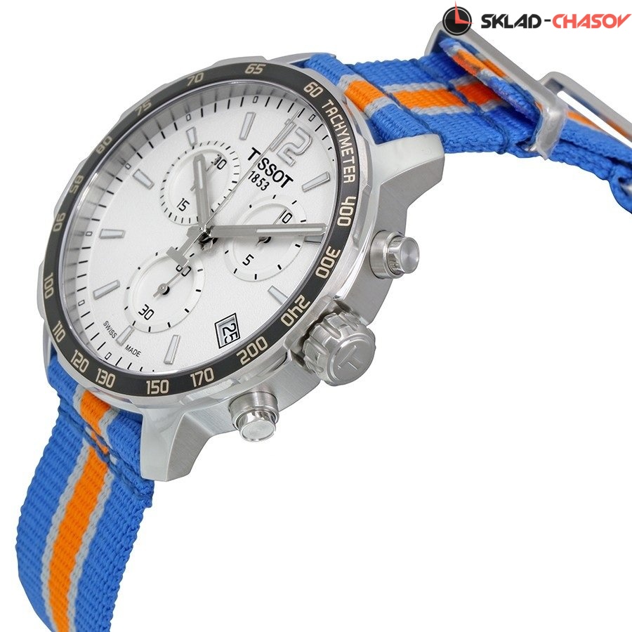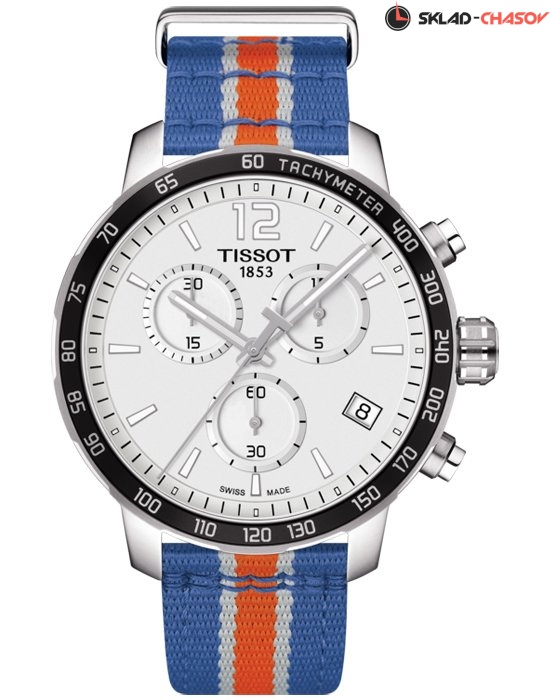 TISSOT T0954171703706 T-Sport Quickster NBA Teams - мужские кварцевые наручные часы Корпус этих часов среднего размера (42 мм) и выполнен из нержавеющей стали L316 металлического цвета Модель TISSOT T0954171703706 T-Sport Quickster NBA Teams имеет устойчивое к царапинам сапфировое стекло, текстильный ремешок синего цвета, белый циферблат Калибр механизма: ETA G10211 Класс водозащиты: 100 м / 10 АТМ (разрешается плавание и ныряние без акваланга) Дополнительные функции и особенности: отображение числа, хронограф (секундомер), limited edition (ограниченный выпуск) Полная заводская комплектация TISSOT: оригинальные часы, фирменная коробка, инструкция, сервисная книжка, роман о часовой фабрике, миникаталог, замшевый фирменный чехол черного цвета для хранения и/или переноски часов, кассовый и товарный чеки Международная гарантия 2 года Производство и сборка: Швейцария.