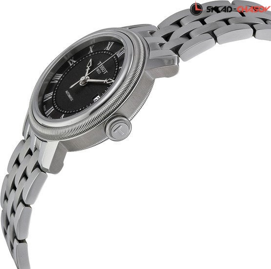 TISSOT T0970071105300 T-Classic Bridgeport Automatic - женские механические наручные часы Корпус этих часов небольшого размера (29 мм) и выполнен из нержавеющей стали L316 металлического цвета Модель TISSOT T0970071105300 T-Classic Bridgeport Automatic имеет устойчивое к царапинам сапфировое стекло, браслет из нержавеющей стали металлического цвета, черный циферблат Калибр механизма: ETA 2671 Класс водозащиты: 50 м / 5 АТМ (избыточная защита от брызг, допускается кратковременное нахождение в воде) Дополнительные функции и особенности: отображение числа Полная заводская комплектация TISSOT: оригинальные часы, фирменная коробка, инструкция, сервисная книжка, роман о часовой фабрике, миникаталог, замшевый фирменный чехол черного цвета для хранения и/или переноски часов, кассовый и товарный чеки Международная гарантия 2 года Производство и сборка: Швейцария.