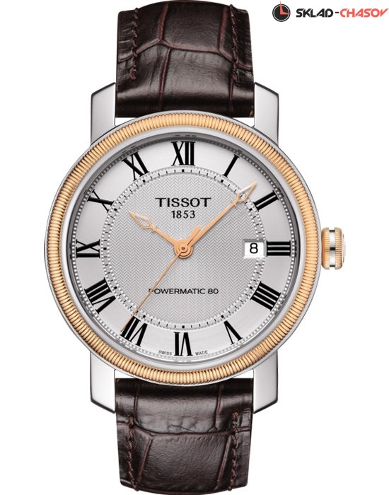 Мужские механические швейцарские часы Tissot Bridgeport Powermatic 80 T097.407.26.033.00, механический механизм (автоматический калибр) с высокой точностью. Сапфировое стекло устойчивое к появлению царапин, обладающее высокой прозрачностью. Класс водозащиты: 50 метров, позволит защитить корпус от случайных брызг или капель дождя. Корпус часов изготовлен из стали, цвета.