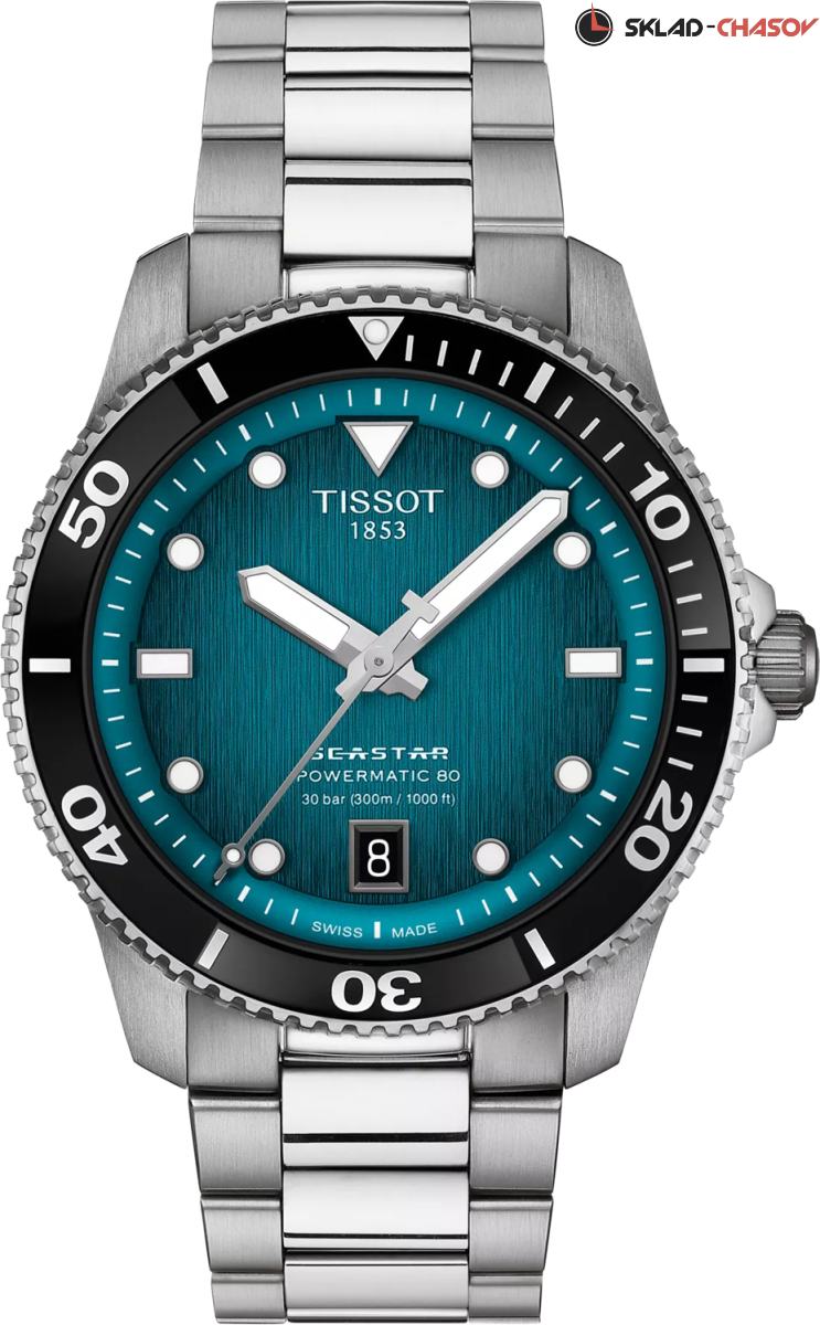 Мужская модель для поклонников водных видов спорта. Однонаправленно вращающийся безель с минутной шкалой, окошко даты в положении 6 часов, люминесцентное покрытие на разметке и стрелках.