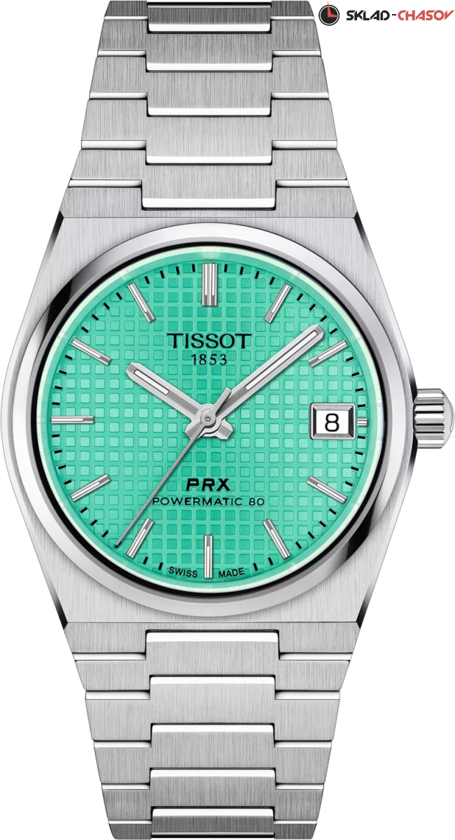 перевыпуск известной коллекции PRX 1978 года, стильный и изящный корпус женских часов с апертурой даты на 3 часах, плавный переход корпуса в браслет. Гильошированный циферблат с рисунком clou de Paris (парижские гвозди). Новый автоматический механизм POWERMATIC 80.111 с запасом хода 80 часов и защитой от магнитных полей (используется пружина баланса Nivachron изготовленная из титановго сплава)