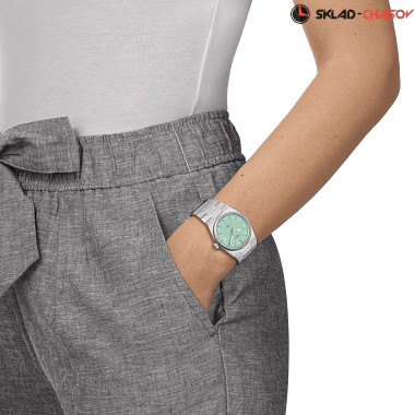 перевыпуск известной коллекции PRX 1978 года, стильный и изящный корпус женских часов с апертурой даты на 3 часах, плавный переход корпуса в браслет