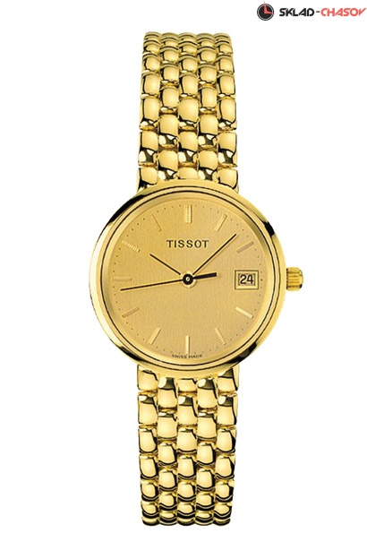 Модель T73.3.108.21 – элегантные женские швейцарские часы из коллекции Tissot T-Gold. Эти элитные часы имеют аккуратный золотой классический круглый корпус с золотым циферблатом на стильном золотом браслете, имеющем ювелирную застежку. Такие швейцарские часы с кварцевым механизмом на 9 камнях - статусный и элеган F2ный атрибут на руке у успешной и уверенной в себе женщины.