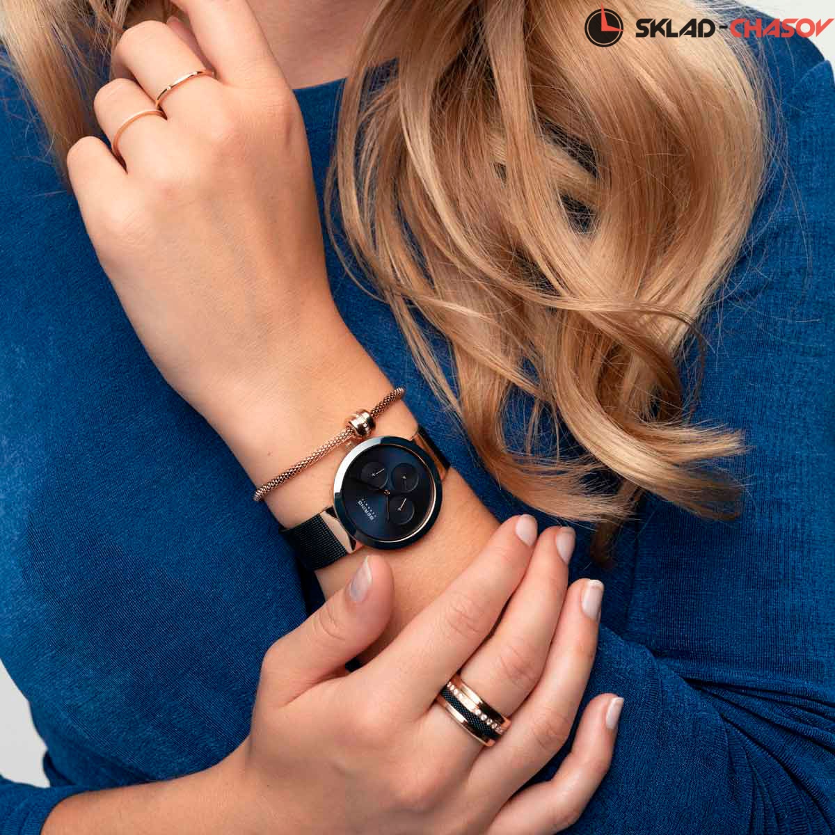 Часы на браслете станут отличным вариантом на каждый день. Ваш безупречный стиль! Ceramic. Циферблат без меток выполнен по технологии Sunray (солнечные лучи). Отдельные циферблаты для даты (на 3 часа), дня недели (на 9 часов) и секундной стрелки (на 6 часов). Керамический безель с отделкой Smooth Touch. Браслет миланского плетения.