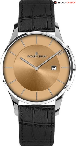 Безупречная линия классического корпуса и аккуратные черты. Отличные часы для повседневной офисной жизни. Мужские наручные кварцевые часы из коллекции London выполнены в круглом корпусе. • Корпус из высококачественного стального сплава 316L с высокими антикоррозийными свойствами. • Диаметр корпуса 38 мм. • Часы оснащены ремешком из натуральной кожи черного цвета. Ремешок с прошивкой по периметру и с оригинальным тиснением. • Минеральное стекло с повышенной прочностью устойчивое к возникновению царапин. • Кварцевый механизм не требует регулярного подзавода и гарантирует продолжительное время работы от батарейки. • Точность хода не хуже -10 +15 сек./в месяц. • Золотистый циферблат с длинными маркерами часа. • Квадратная апертура с датой возле отметки 3 часа. • Центральная секундная стрелка отсутствует. • Корпус обладает водозащитой 5 АТМ, что позволяет ежедневный нормальный контакт с водой. • Заводная головка с защитой.