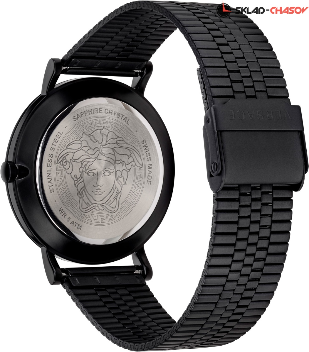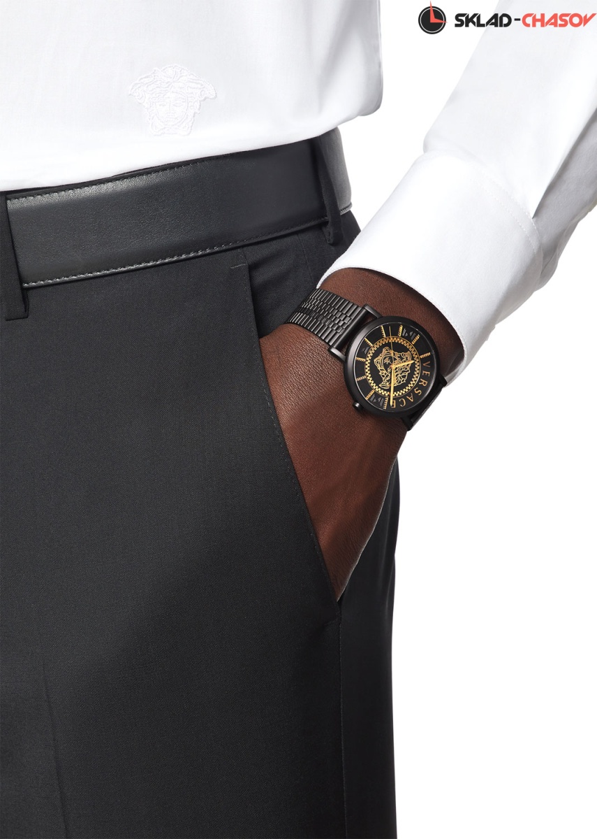 Модные мужские часы с выразительным логотипом, которые подчеркнут вашу индивидуальность и умение выбирать роскошные аксессуары. V-Essential Gents 40 mm. Круглый стальной полированный корпус. Циферблат украшен объемным фирменным логотипом в виде головы Медузы, фрагментированным меандровым орнаментом Greca между часовых меток и изогнутой надписью ''Versace'' в положении 12 часов. Метки в виде штрихов. Гладкая заводная головка. Задняя крышка украшена выгравированным логотипом в виде головы Медузы, окруженной меандровым орнаментом Greca. Стальной браслет с застежкой - раскладным замком. Застежка с системой блокировки.