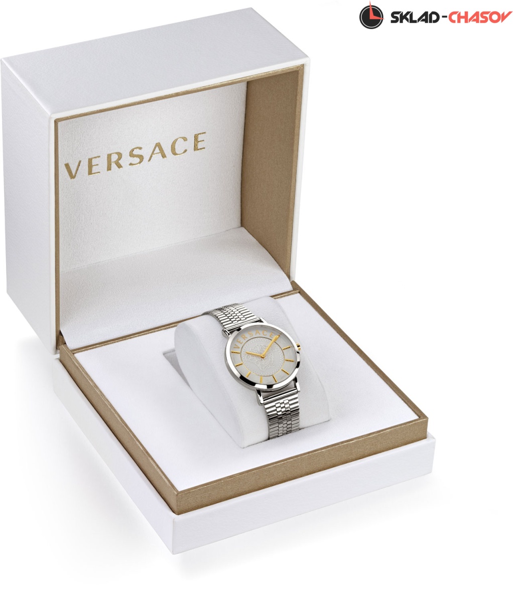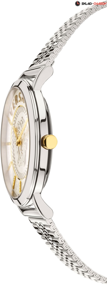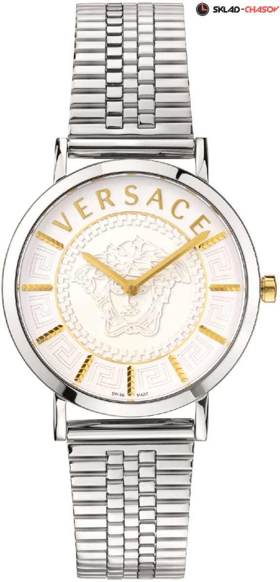Модные женские часы с выразительным логотипом, которые подчеркнут вашу индивидуальность и умение выбирать роскошные аксессуары. V-Essential. Круглый стальной полированный корпус. Циферблат украшен объемным фирменным логотипом в виде головы Медузы, фрагментированным меандровым орнаментом Greca между часовых меток и изогнутой надписью ''Versace'' в положении 12 часов. Метки в виде штрихов. Гладкая заводная головка. Задняя крышка украшена выгравированным логотипом в виде головы Медузы, окруженной меандровым орнаментом Greca. Стальной браслет с застежкой - раскладным замком. Застежка с системой блокировки.