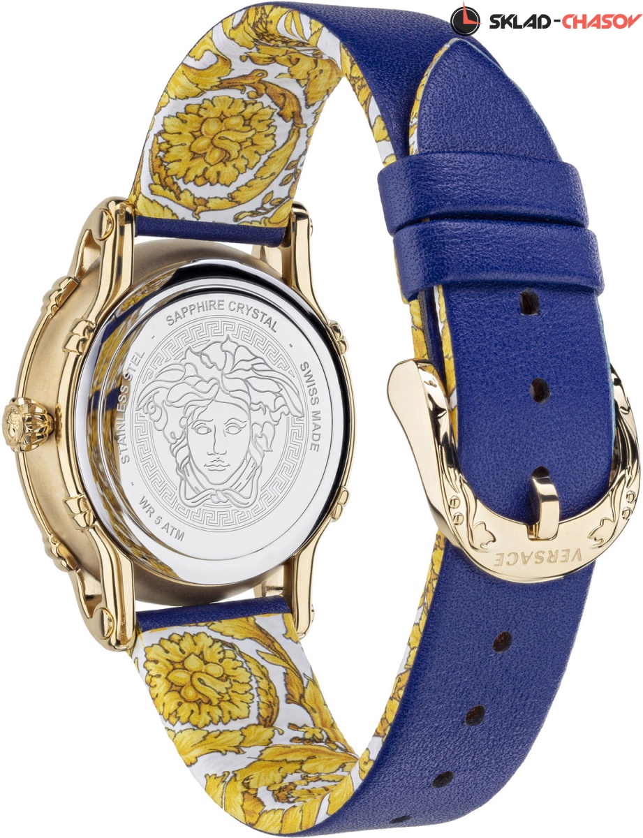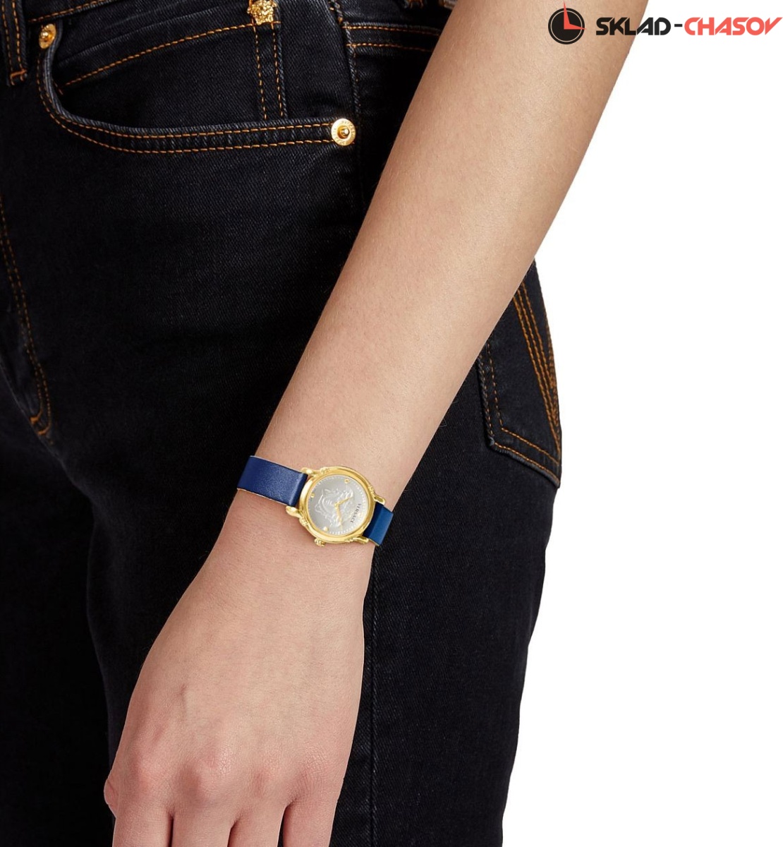Стильный дизайн с элементами барокко придется по вкусу современным леди, которые ценят удобство, красоту и эстетику. Дизайнерские наручные часы Safety Pin. Красивый узорный корпус. Циферблат с барельефом головы Медузы. Метки в виде точек. Рифленая заводная головка украшена рельефным изображением головы Медузы. Задняя крышка украшена гравировкой головой Медузы. Кожаный ремешок с внутренней стороны выполнен со знаковым принтом барокко. Классическая застежка украшена узором и фирменным логотипом.