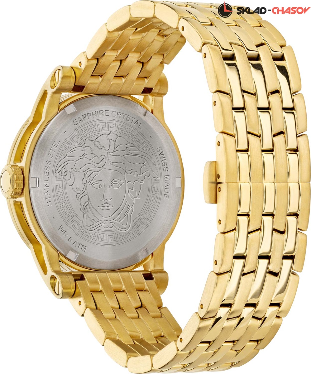 Настоящие ценители прекрасного, бесспорно захотят увидеть в своей коллекции этот стильный аксессуар. Code. Циферблат с метками в виде штрихов. Метка на 12 часов выполнена в виде головы Медузы. Рифленая заводная головка. Круглый корпус. Браслет с раскладывающейся застежкой.