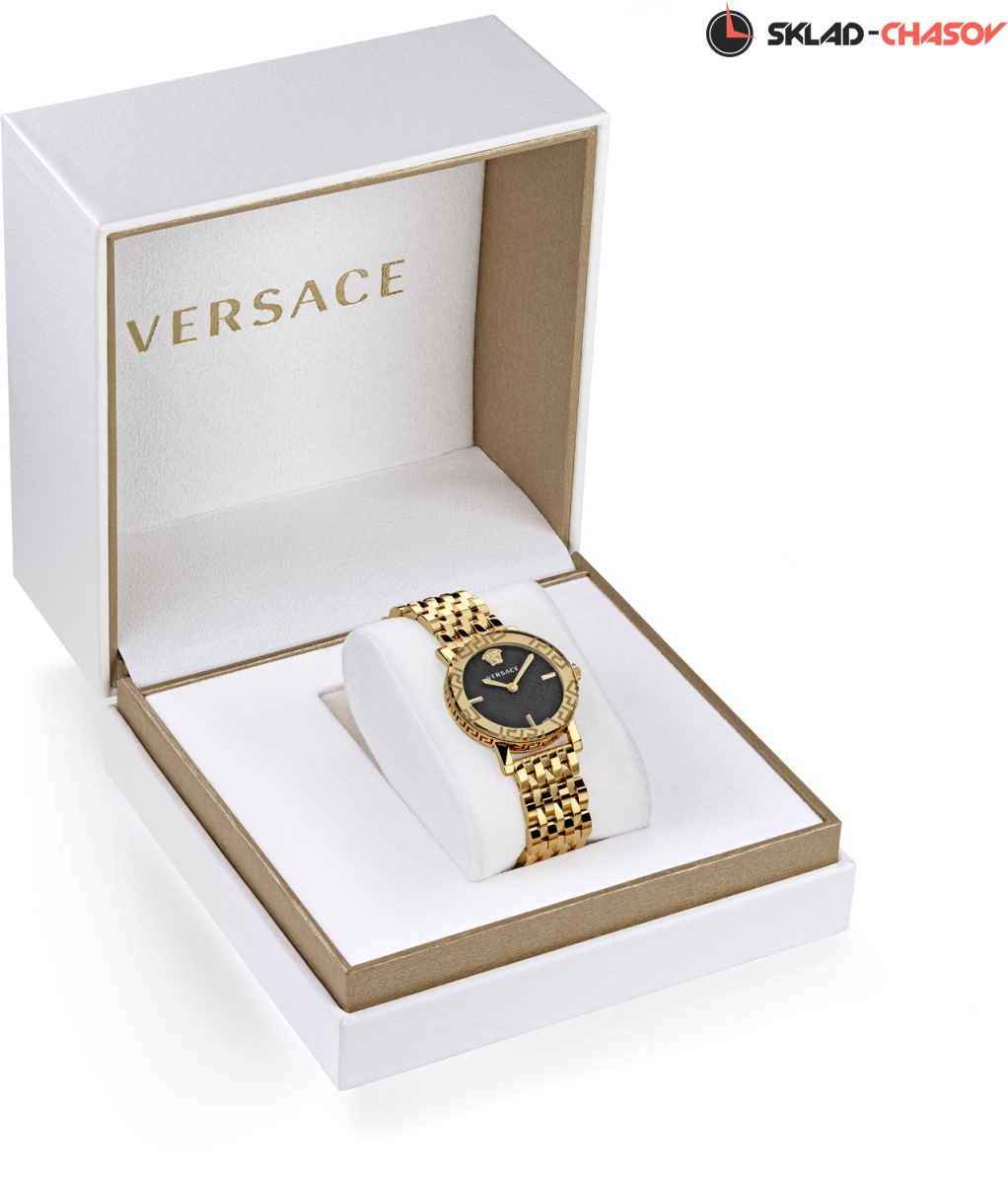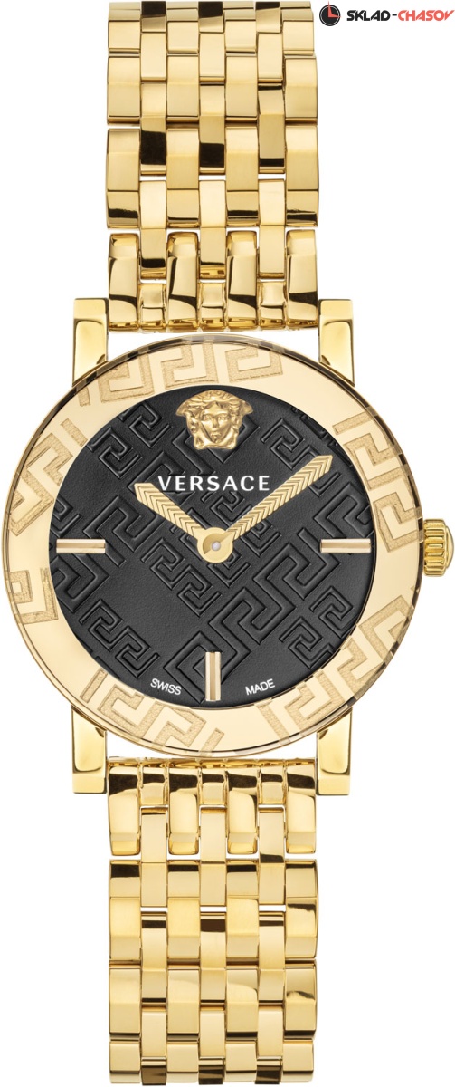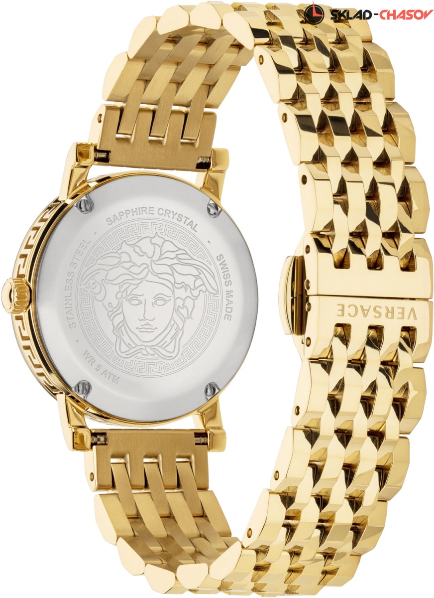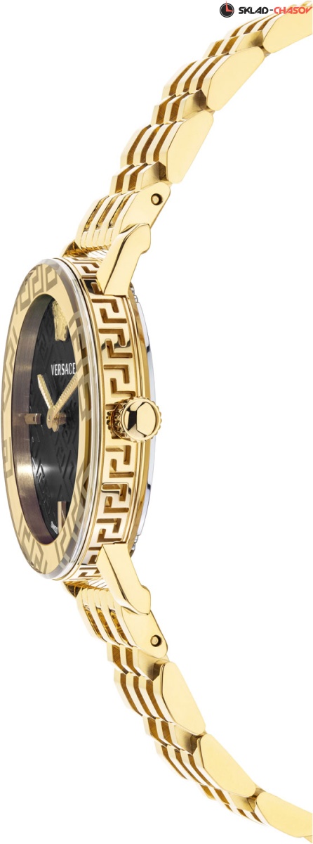 Эти привлекательные часы станут шикарным аксессуаром для стильной и модной девушки, желающей оставаться в центре внимания окружающих. Greca Glass. Круглый стальной корпус украшен по периметру объемным глубоким орнаментом. Безель украшен гравировкой, циферблат - тиснением с декоративными узорами на меандровый мотив. Мечевидные стрелки декорированы фирменным V-паттерном. Метки в виде штрихов, 12-ти часовая метка в виде головы Медузы. Рифленая заводная головка. Задняя крышка крепится на винтах и украшена выгравированным логотипом в виде головы Медузы, окруженной меандровым орнаментом Greca. Стальной браслет с раскладывающейся застежкой.