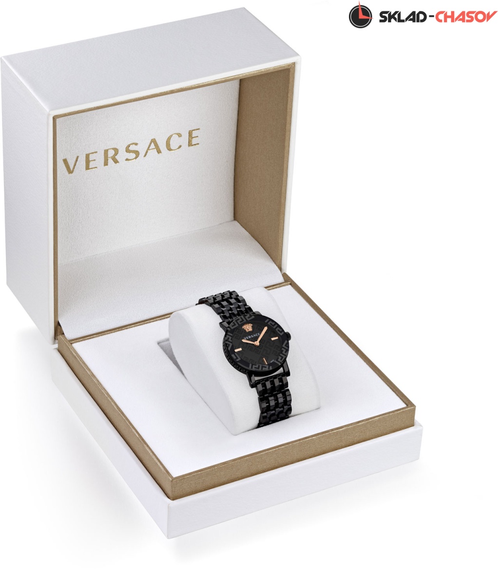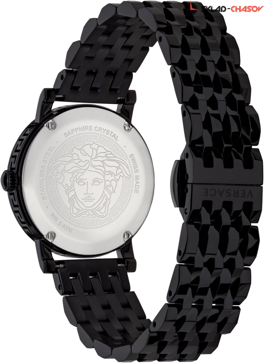 Эти привлекательные часы станут шикарным аксессуаром для стильной и модной девушки, желающей оставаться в центре внимания окружающих. Greca Glass. Круглый стальной корпус украшен по периметру объемным глубоким орнаментом. Безель украшен гравировкой, циферблат - тиснением с декоративными узорами на меандровый мотив. Мечевидные стрелки декорированы фирменным V-паттерном. Метки в виде штрихов, 12-ти часовая метка в виде головы Медузы. Рифленая заводная головка. Задняя крышка крепится на винтах и украшена выгравированным логотипом в виде головы Медузы, окруженной меандровым орнаментом Greca. Стальной браслет с раскладывающейся застежкой.