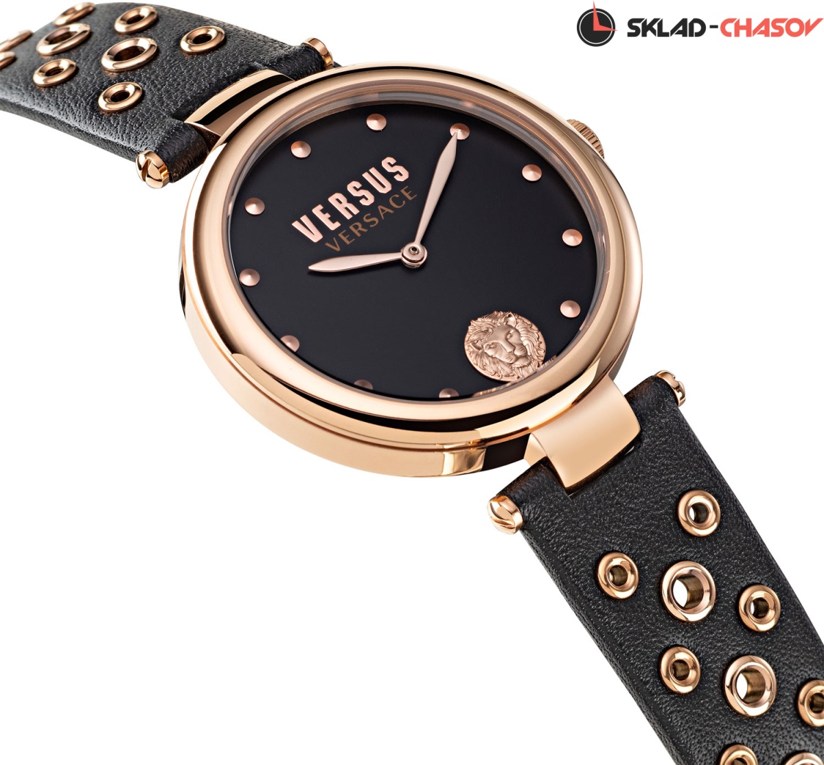 Модные часы с выразительным дизайном понравятся элегантным поклонницам стильных аксессуаров. Los Feliz. Женские часы в круглом полированном корпусе из нержавеющей стали. Циферблат украшен объемным логотипом в форме головы льва в положении 6 часов и фирменной надписью. Мечевидные стрелки. Часовые метки в виде металлических точек. Рифленая заводная головка. Удобный ремешок из натуральной кожи декорирован металлическими заклепками.
