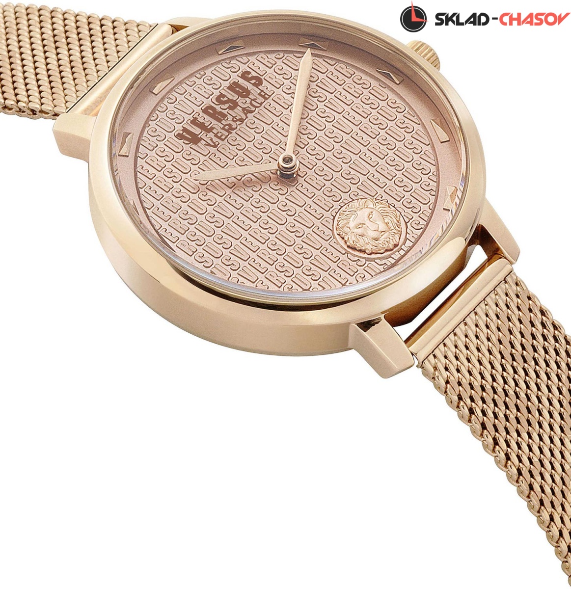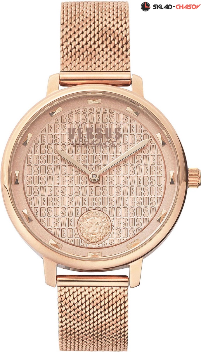 Стильный женский аксессуар придется по душе даже самой искушенной моднице. La Villette. Циферблат украшен объемным лого в форме головы льва. Рифленая заводная головка. Браслет миланского плетения.