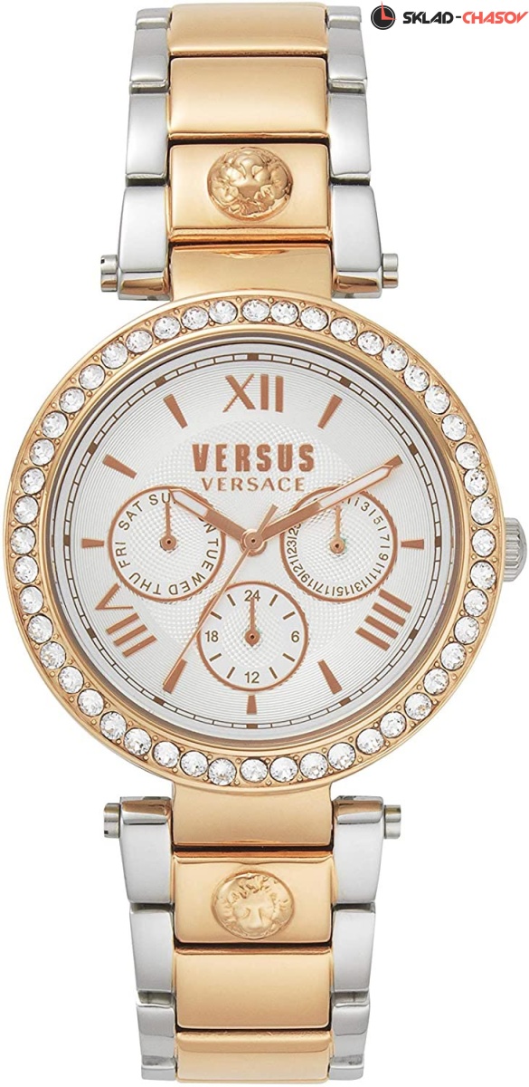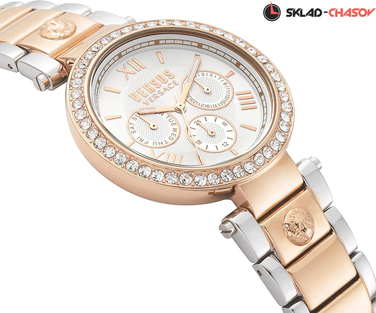 Сверкающие кристаллы Swarovski наделяют эти функциональные часы неповторимой энергетикой и наполнят ваш образ притягательным изяществом. Camden Market. 12-ти и 24-х часовой формат времени. Дата и день недели вынесены на отдельные циферблаты. Браслет с раскладывающейся застежкой украшен объемным изображением головы льва.