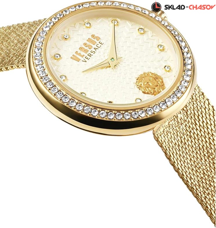 Стильные часы с изящным дизайном будут прекрасно смотреться на утонченном запястье. Выбор, который говорит о вашем настроении. Притягательные женские часы Lea с круглым корпусом, украшенным кристальным паве из камней Сваровски. Изящный циферблат с узором украшен 3d лого в форме головы льва. Часовые метки в виде точек украшенных кристаллами Swarovski. Рифленая заводная головка. Стальной браслет миланского плетения.