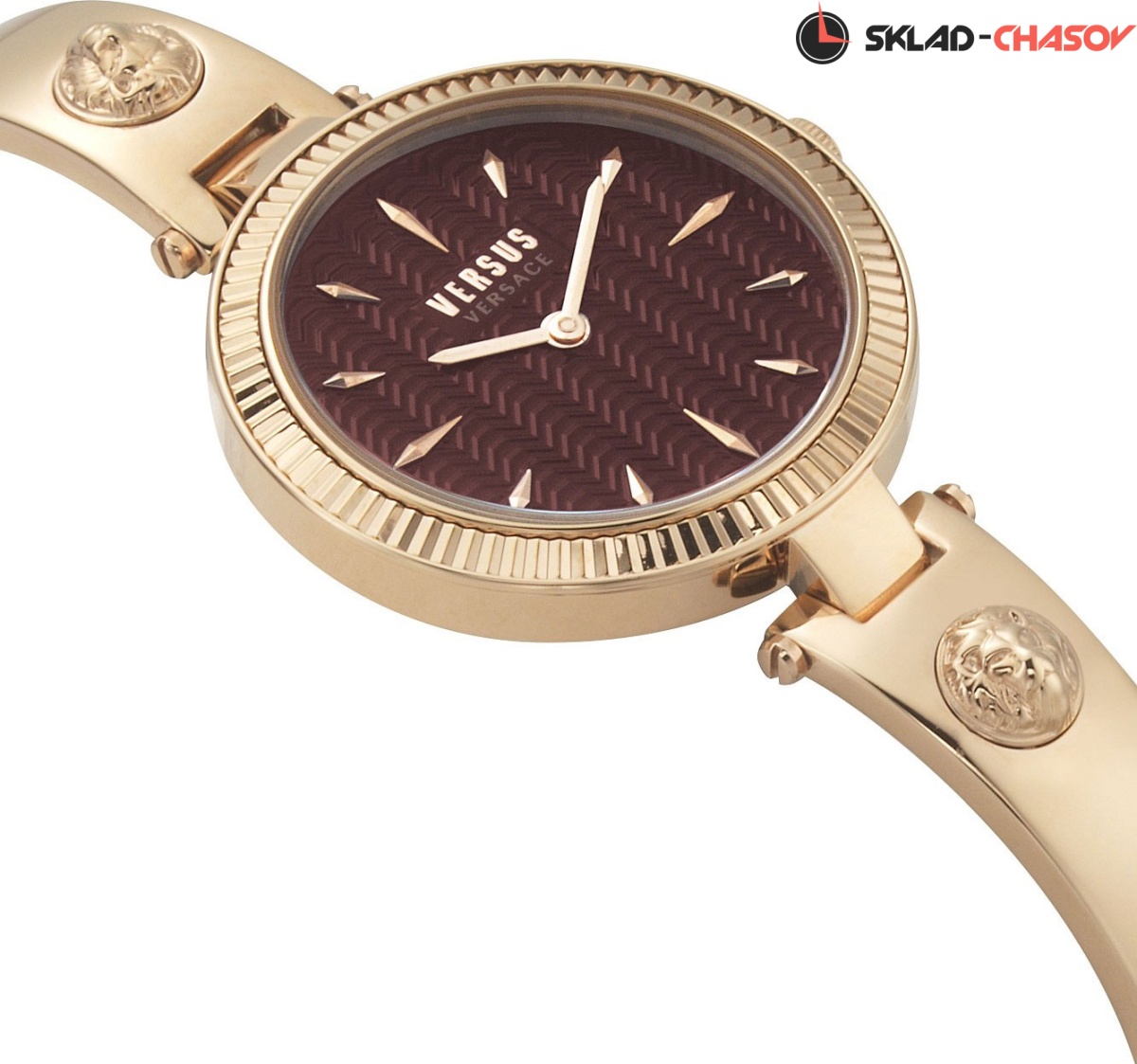 Запоминающийся дизайн, который обращает на себя внимание. Часы, которые знают себе цену. Brigitte. Круглый корпус. Рифленный безель подчеркивает рисунок циферблата. Браслет украшен стальными вставками с объемным лого в форме головы льва.