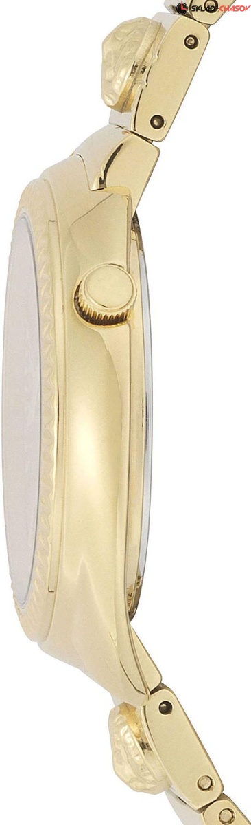 Стильные и обольстительно женственные часы на каждый день. Tortona. Циферблат с метками в виде штрихов. Безель украшен текстурным узором ''геометрическое гофре''. Рифленая заводная головка. Стальной браслет украшен вставками с объемным лого в форме головы льва.