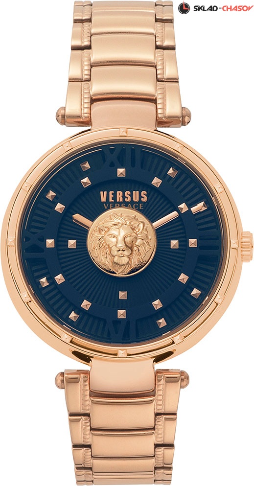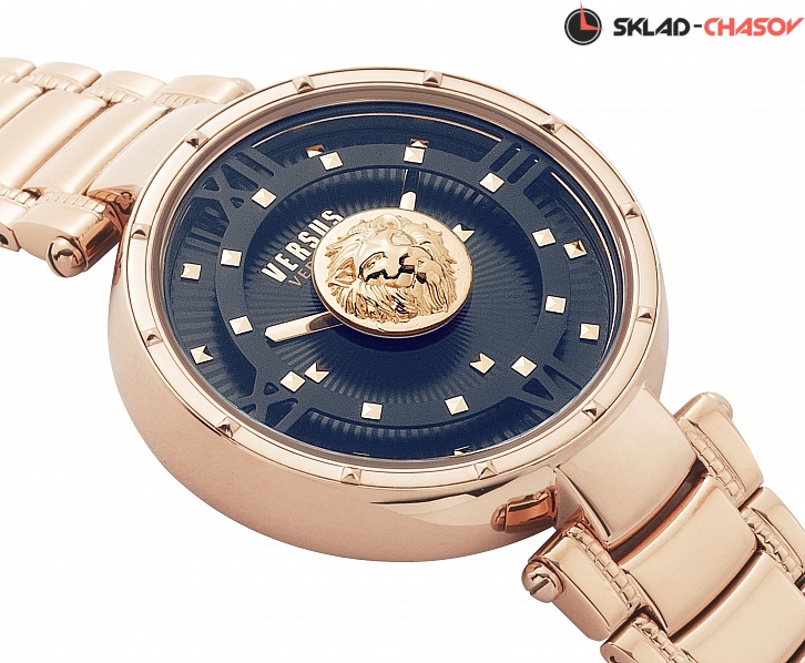 Яркий запоминающийся дизайн этих часов непременно привлечет к себе внимание. Часы для знающих себе цену. Moscova. Коллекция названа в честь столицы России города Москва. На стекле в центре циферблата расположен объемный лого в форме головы льва. Трехуровневый циферблат инкрустирован более 30 мини-клепками. Безель декорирован 12 шипами. Рифленая заводная головка. Браслет с раскладывающейся застежкой.