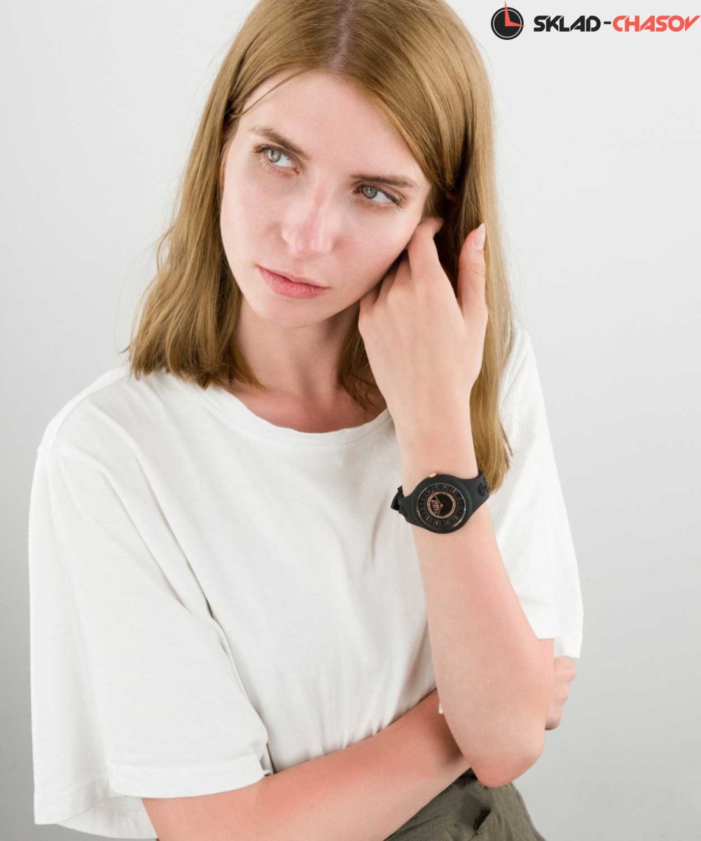 Благородный черный с вкраплениями золотистого подчеркнет ваш безупречный стиль. Модный аксессуар для стильной модницы. Fire Island. Практичные женские часы с пластиковым корпусом на удобном силиконовом ремешке, украшенном объемным изображением головы льва. Заводная головка и задняя крышка выполнены из стали.