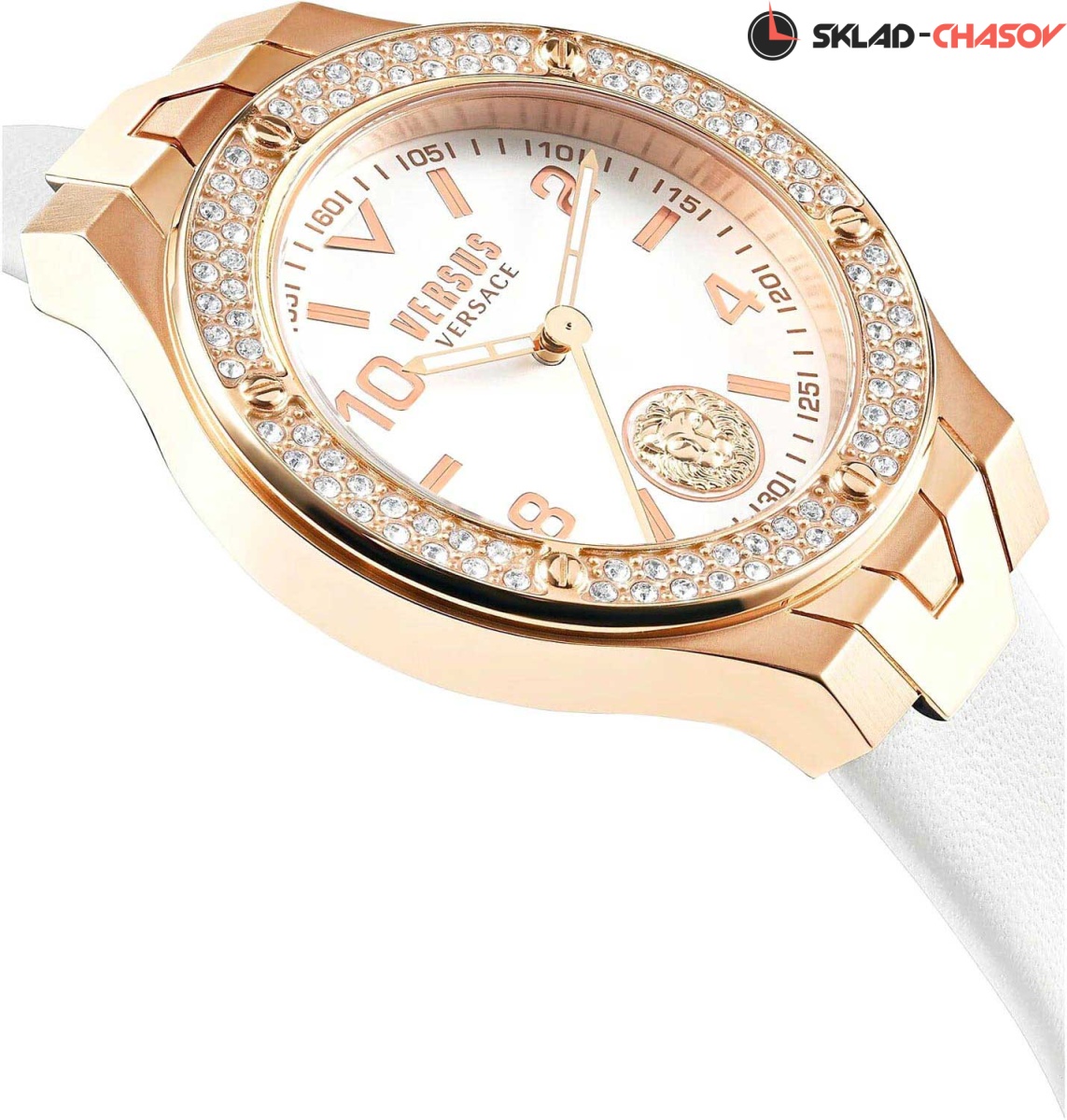 Бесподобные женственные часы окутаю вас ювелирной роскошью, доведя образ до совершенства. Стильные часы Vittoria с круглым стальным корпусом дополненным планками V-образной формы. Безель инкрустирован кристаллами Сваровски. Циферблат украшен 3d лого в форме головы льва. Часовые метки в виде арабских цифр и штрихов. Кожаный ремешок с классической застежкой.