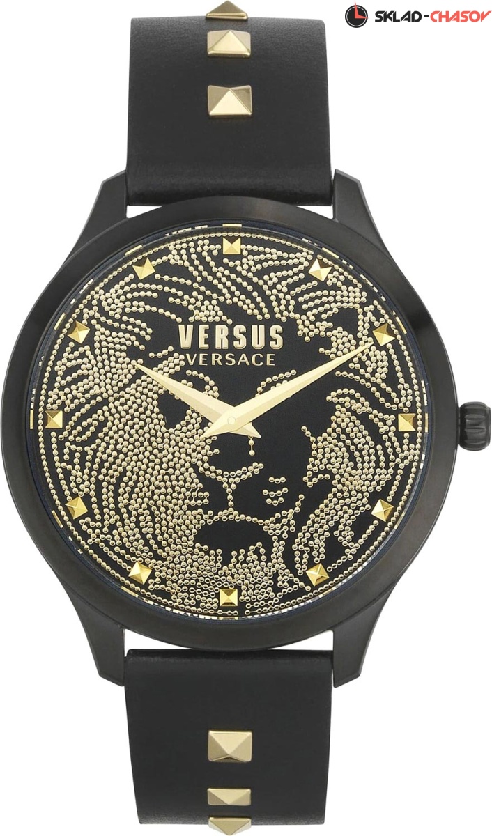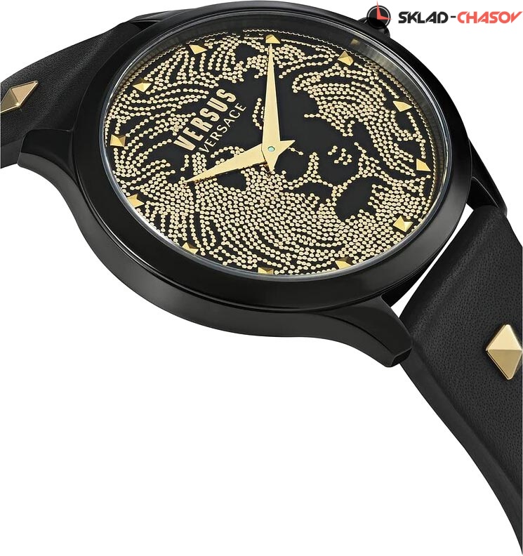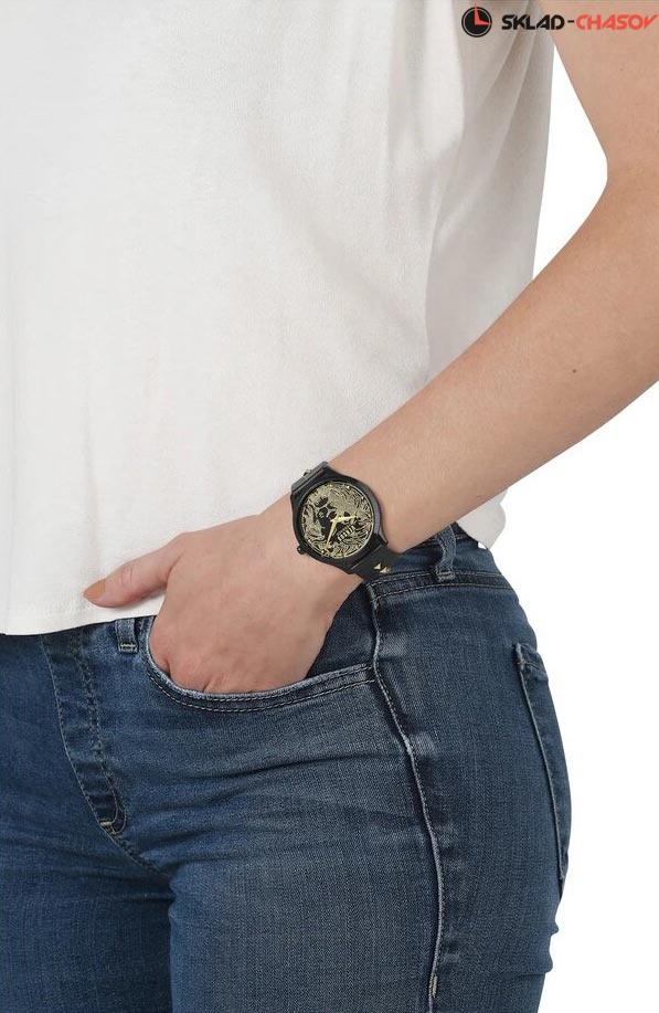 На запястье эти массивные дизайнерские часы смотрятся эффектно, стильно и завораживающе. Они надолго приковывают внимание окружающих. Дизайнерские часы Domus с круглым черным корпусом. Циферблат украшен изящным изображением головы льва. Рифленая заводная головка. Кожаный ремешок декорирован металлическими заклепками.