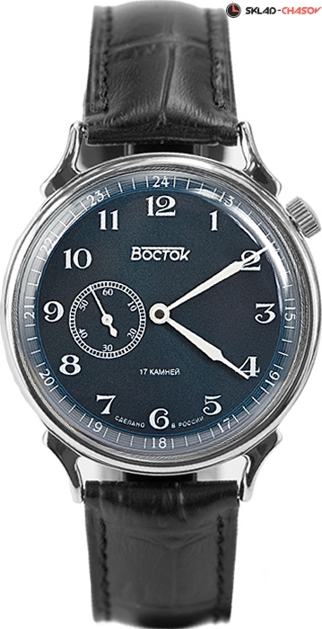 Мужские механические наручные часы Восток в классическом исполнении. Сердцем часов выступает механизм с ручным заводом "Восток 2403" калибра 24 мм (частота 19800 полуколебаний/час). Продолжительность хода от полной заводки пружины - 38 часов. Секундная стрелка вынесена на отдельный малый циферблат. Заводная головка смещена. Циферблат закрывает выпуклое органическое стекло. Корпус выполнен из часовой латуни с покрытием хромом. Задняя крышка выполнена из нержавеющей стали и декорирована гербом России. Ремешок из натуральной кожи с классической застежкой.
