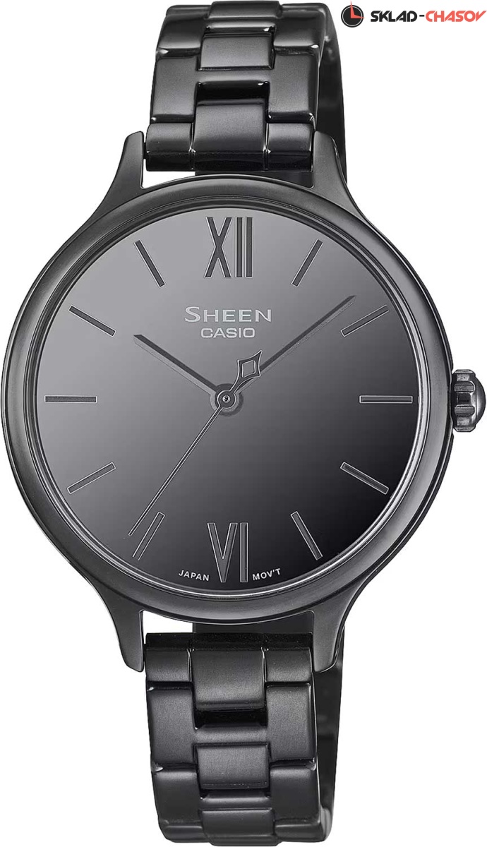 Sheen. Женские часы с круглым стальным корпусом. Циферблат с зеркальной отделкой защищен прочным сапфировым стеклом. Метки в виде штрихов и двух римских цифр. Батарея рассчитана на 3 года. Браслет с тройной раскладывающейся застежкой, расстегиваемой одним касанием.